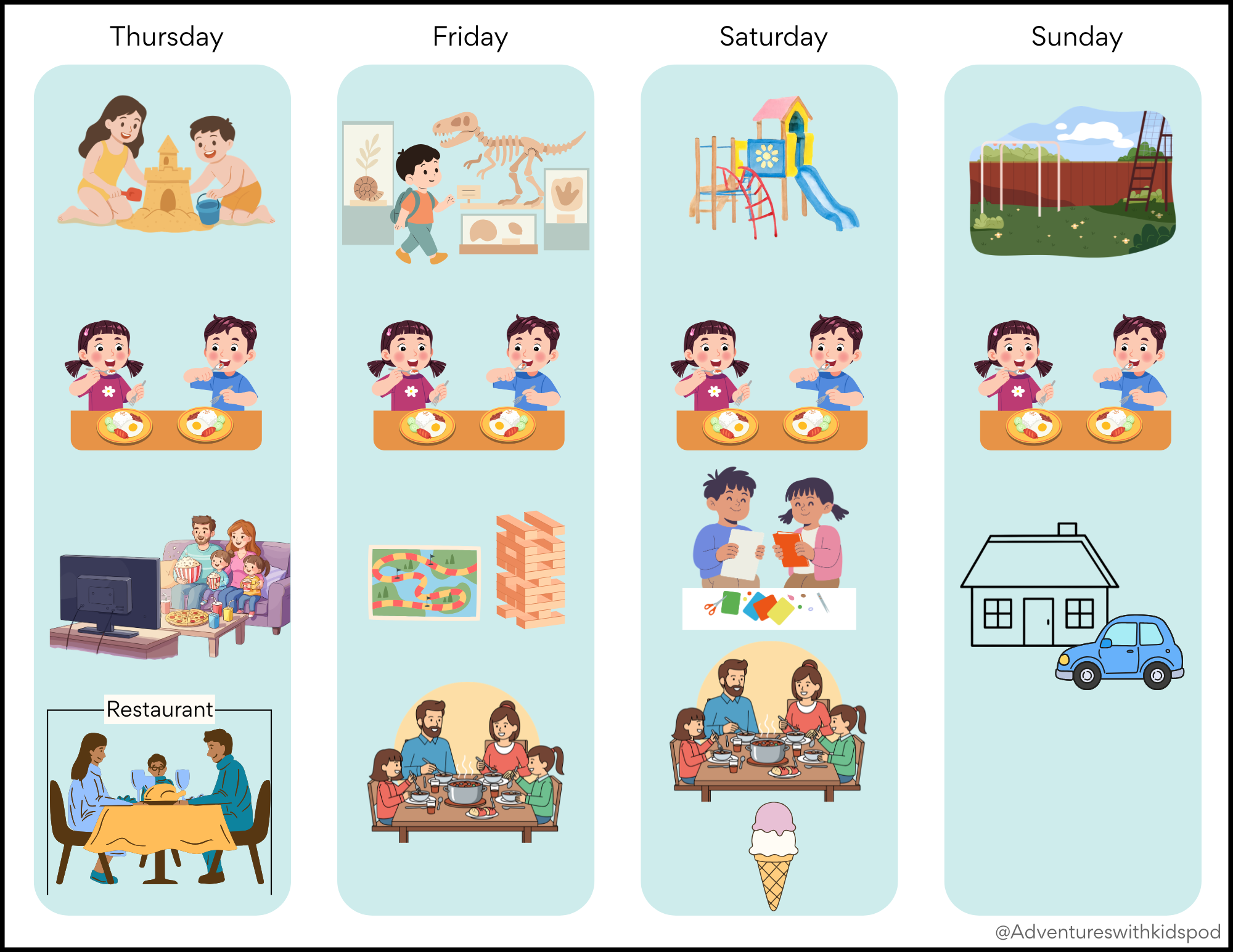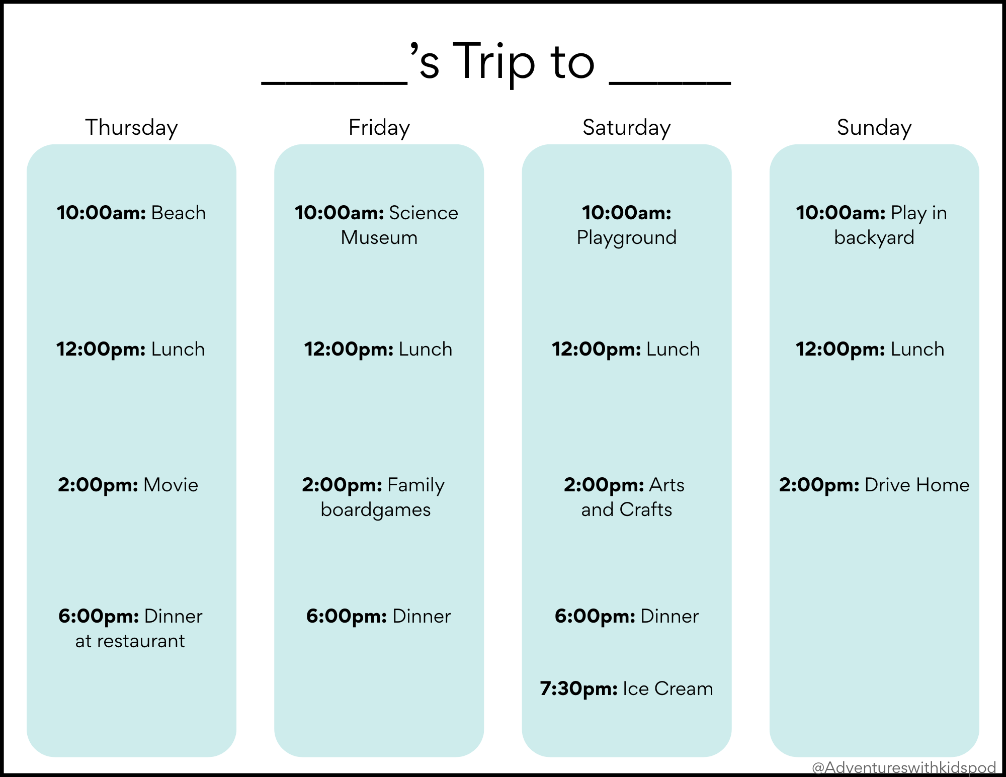 - Visual Schedules: Use Canva to create a simple daily itinerary with photos so your child knows what’s coming next. Better yet, start with my FREE examples and edit them for your family!